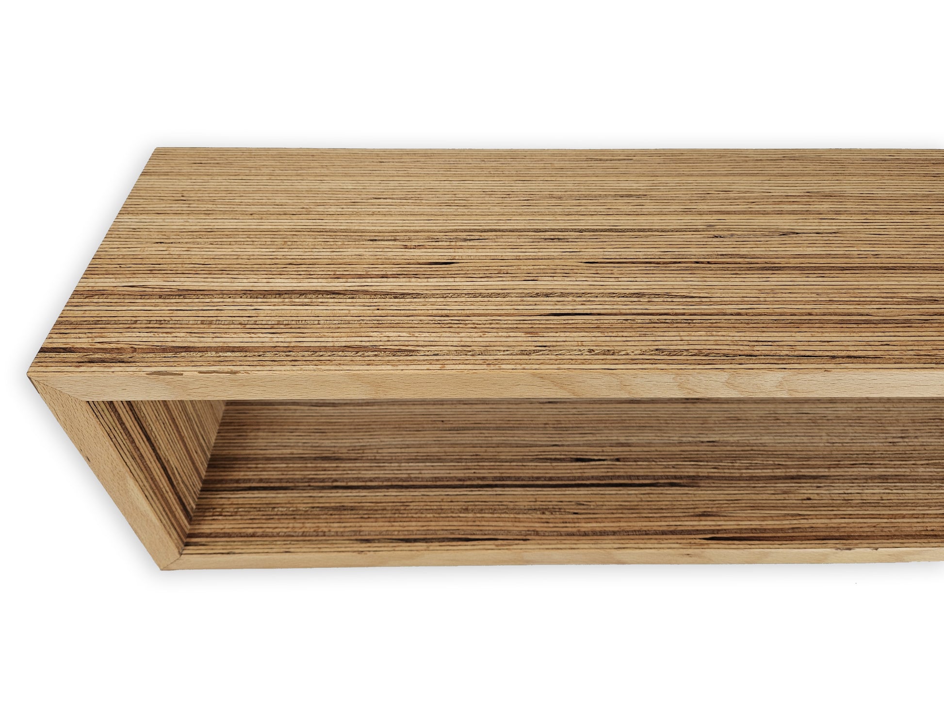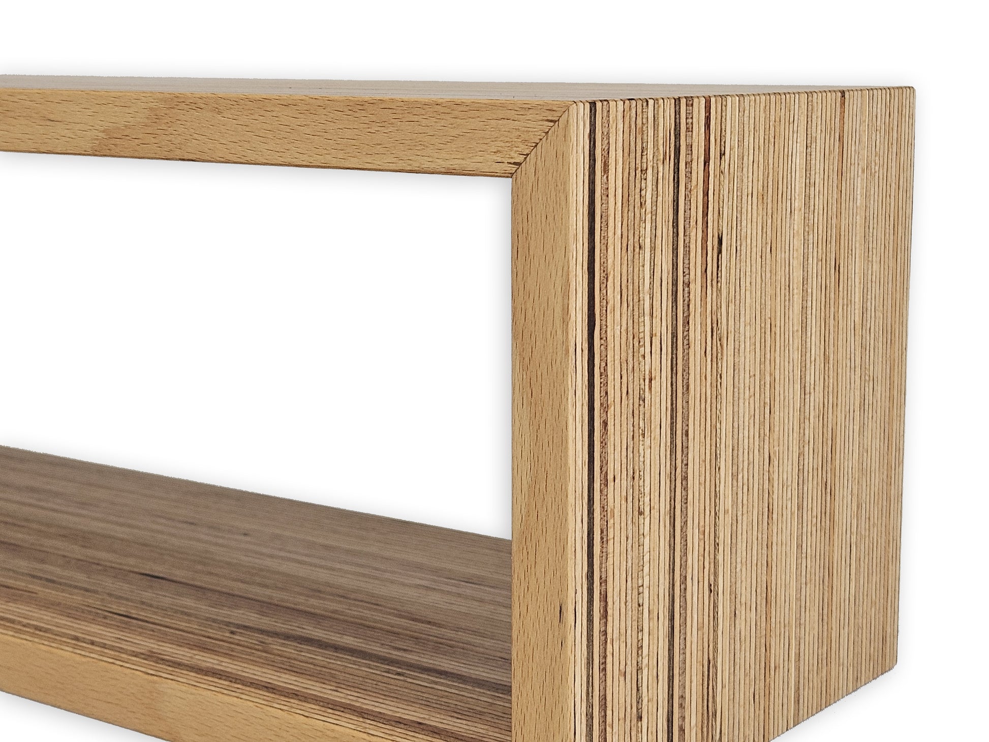 Dieses Wandregal aus mehrschichtig verleimtem Baubuchenholz verbindet außergewöhnliche Stabilität mit zeitloser Eleganz. Die geölte Oberfläche schützt das Holz und hebt die natürliche, gleichmäßige Maserung hervor.