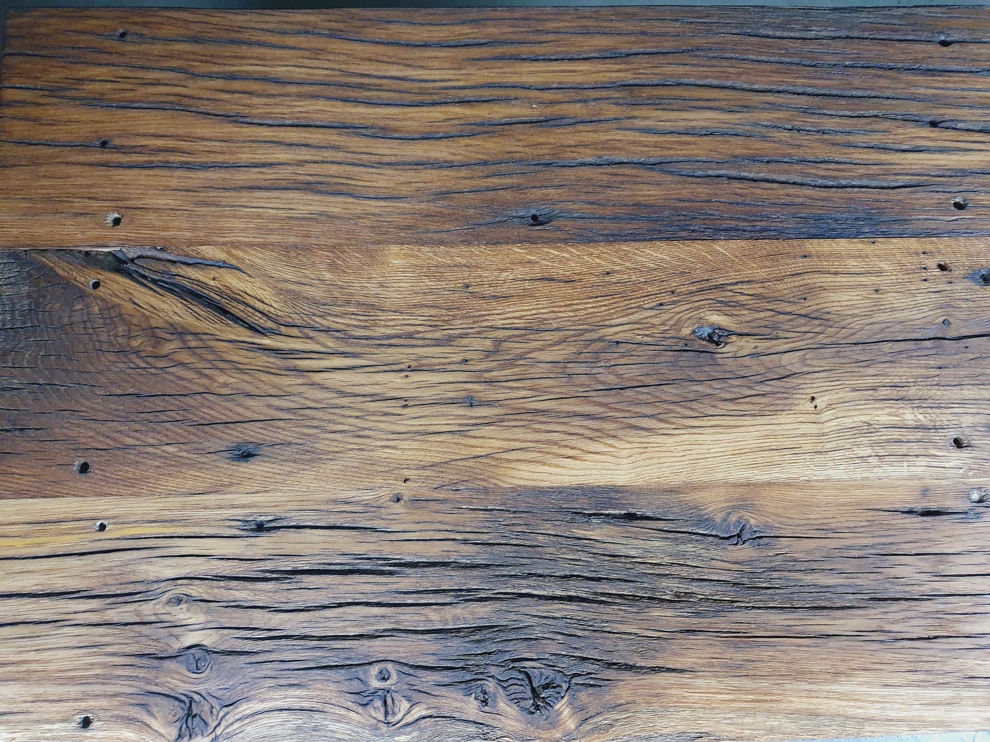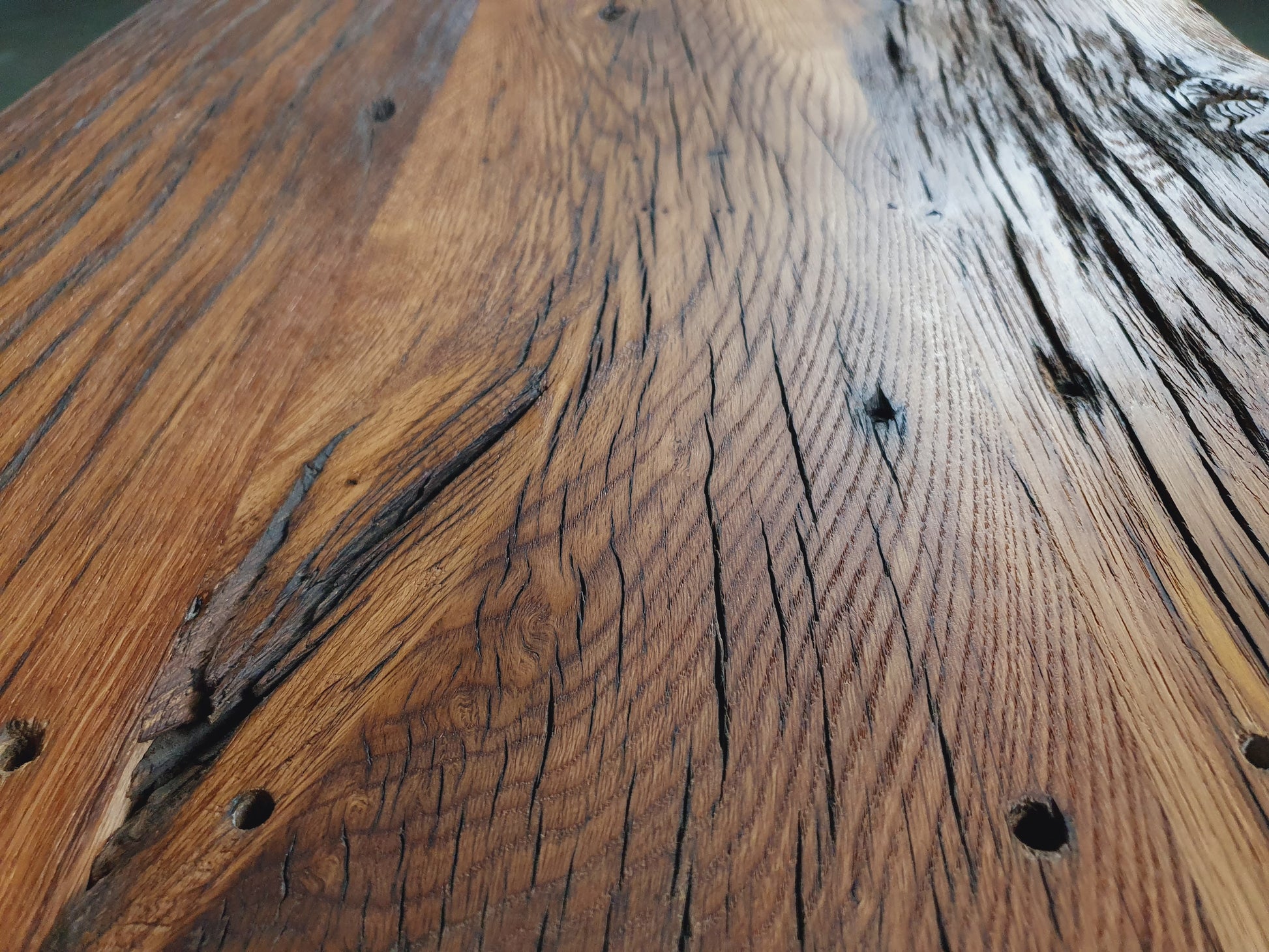 - Rustikaler Charakter durch sorgfältig herausgearbeitete Risse, Schraublöcher und Aststellen