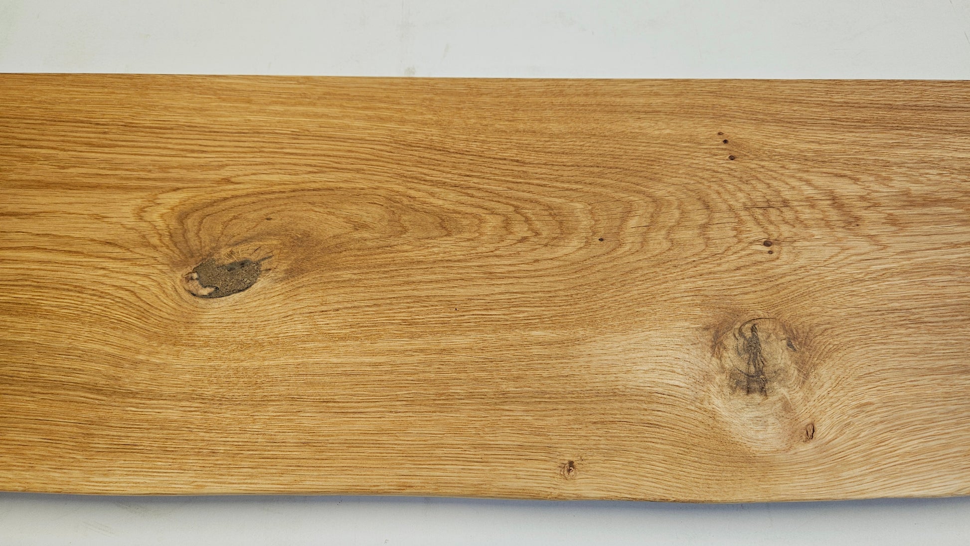 Dieses Wandboard aus massiver Eiche mit Baumkante bringt die zeitlose Schönheit des Holzes in Ihr Zuhause. Die markante, naturbelassene Kante macht jedes Stück zu einem unverwechselbaren Unikat und unterstreicht den charaktervollen Charakter der Eiche.