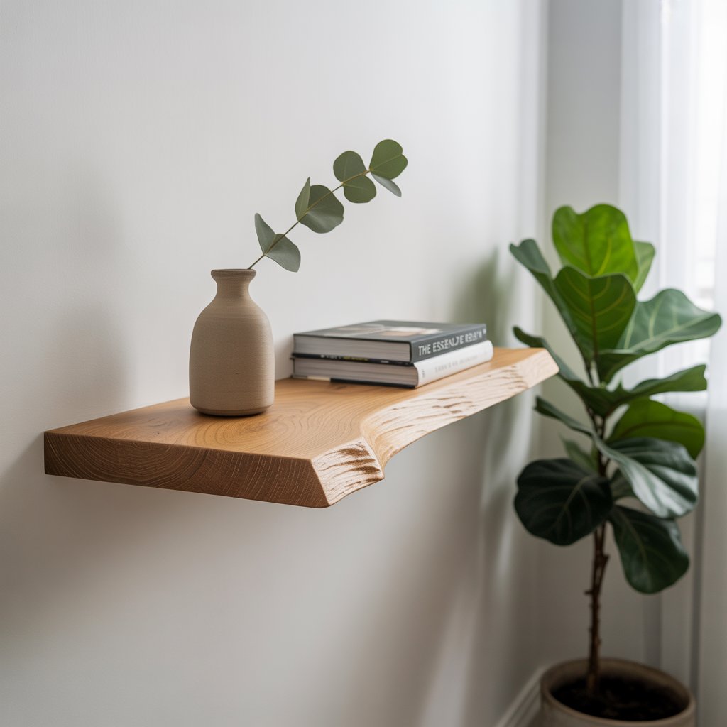 Ob als elegante Ablage im Wohnzimmer, dekoratives Wandboard im Flur oder praktische Küchenablage – ein Eiche-Regal mit Baumkante vereint natürliche Schönheit, Langlebigkeit und exklusive Handwerkskunst.