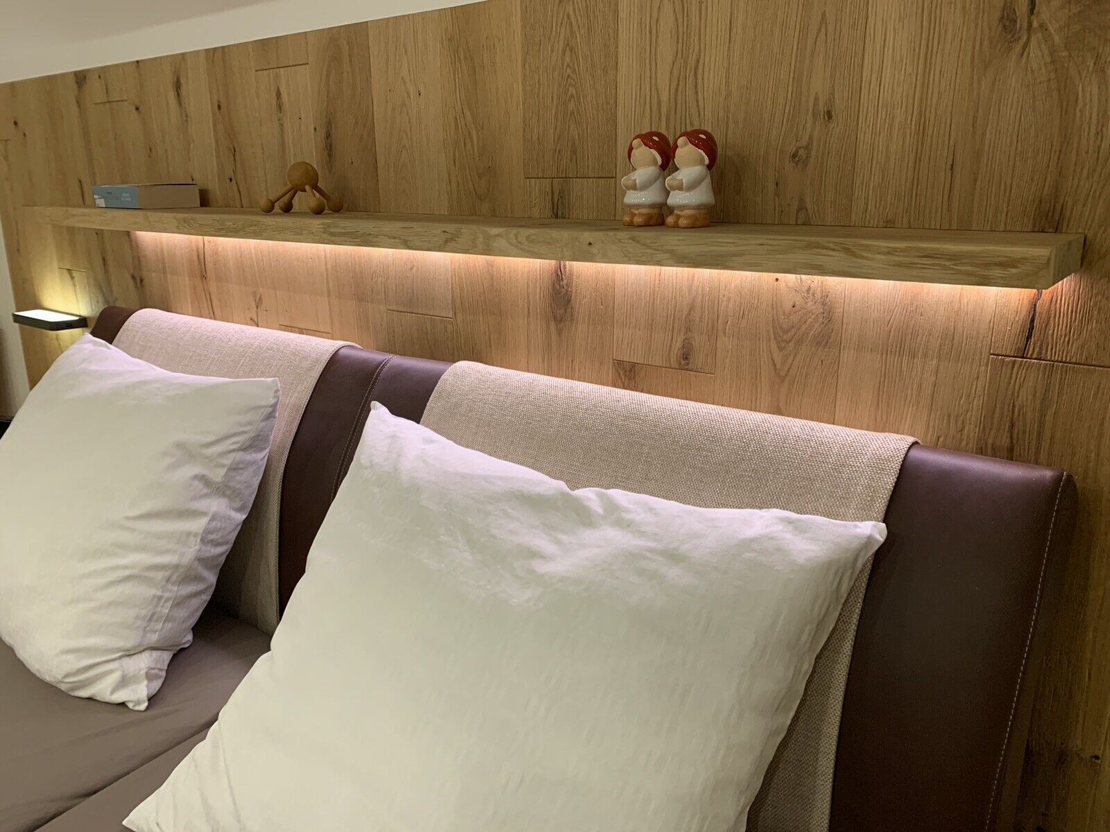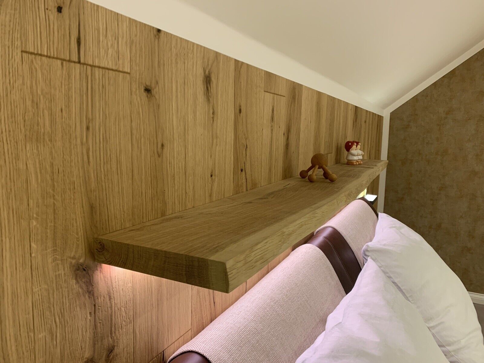 Die geölte Oberfläche des Wandregals bewahrt die natürliche Schönheit