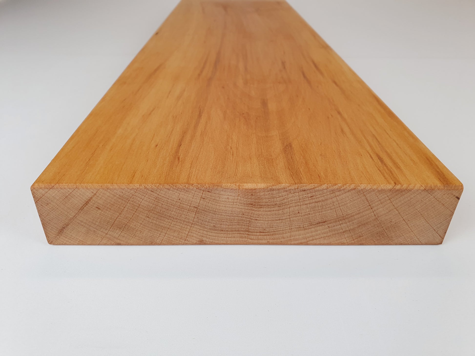 Das Wandregal aus Erle überzeugt durch seine warmen Farbtöne und die feine, gleichmäßige Maserung. Es bringt eine wohnliche, behagliche Atmosphäre in jeden Raum.