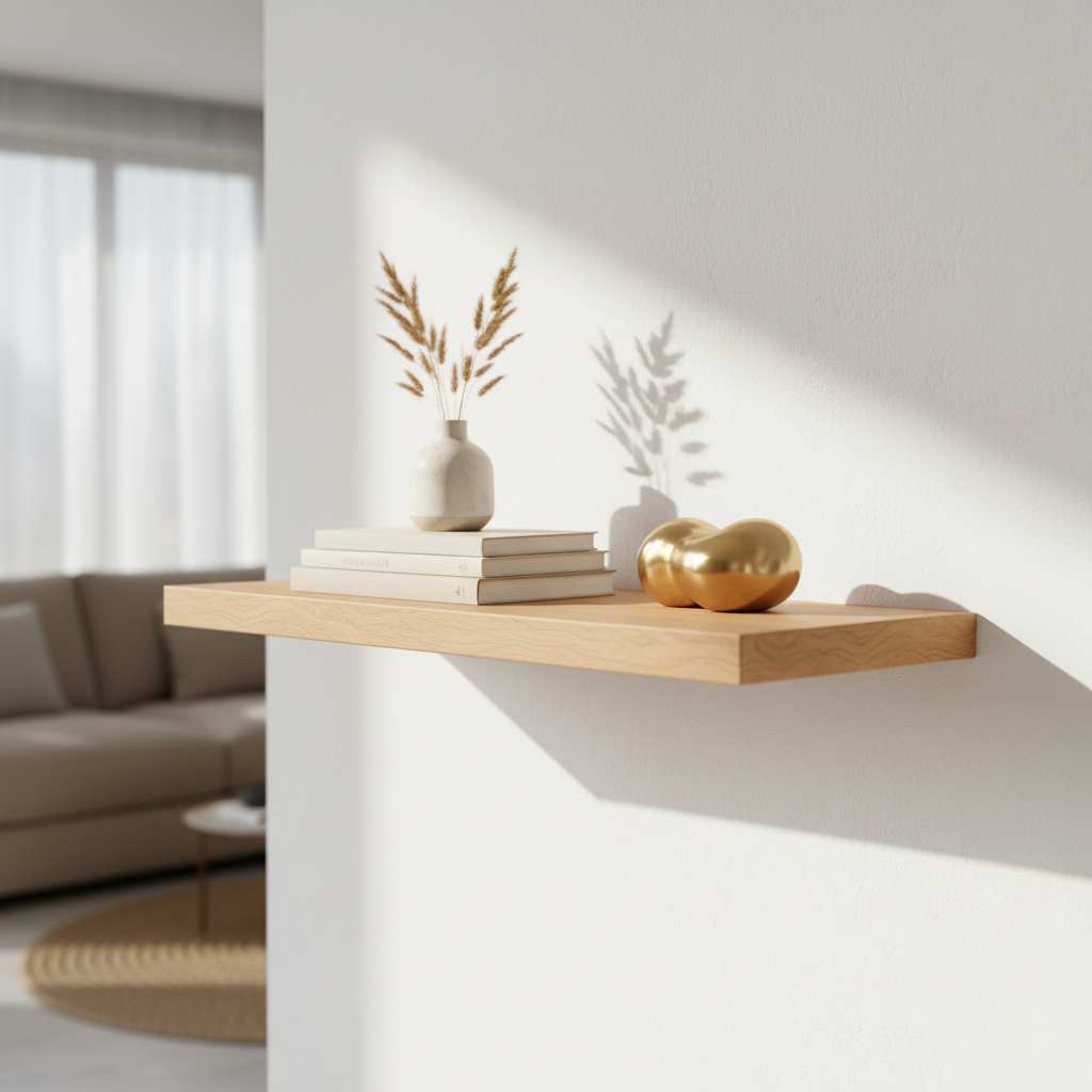 Die unsichtbare, schwebende Montage sorgt für eine moderne Optik, während das massive Holz für Robustheit und Langlebigkeit steht. Ein vielseitiges Regal für viele Wohnbereiche.