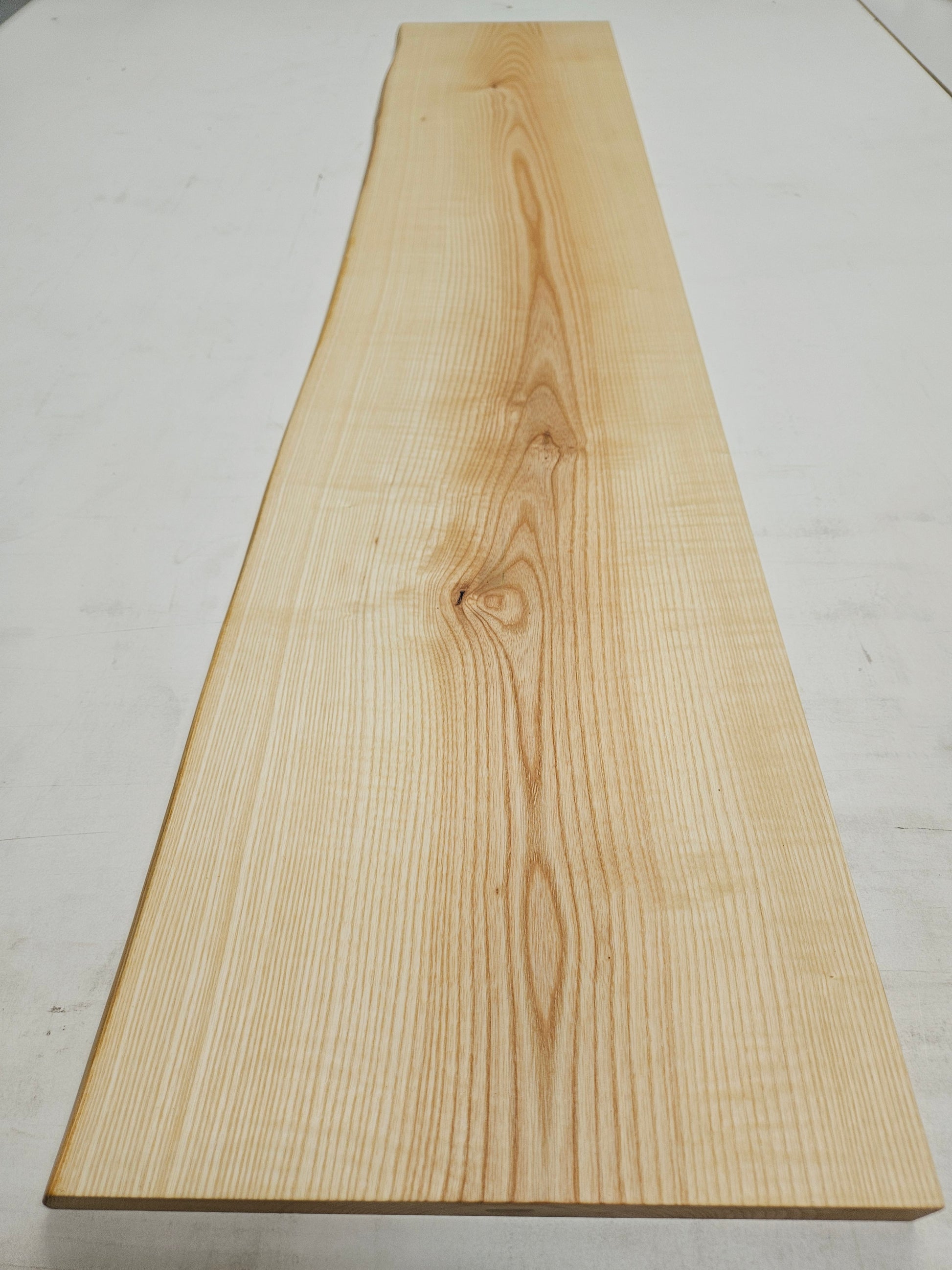 Dieses Wandboard aus massiver Esche begeistert durch seine markante Maserung und die helle, freundliche Farbgebung des Holzes. Die natürliche Baumkante unterstreicht den unverwechselbaren Charakter und macht jedes Regal zu einem echten Unikat.