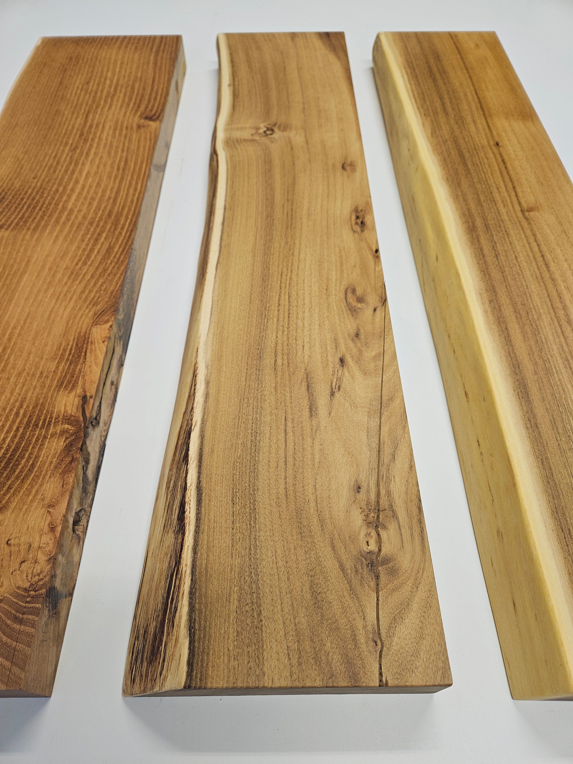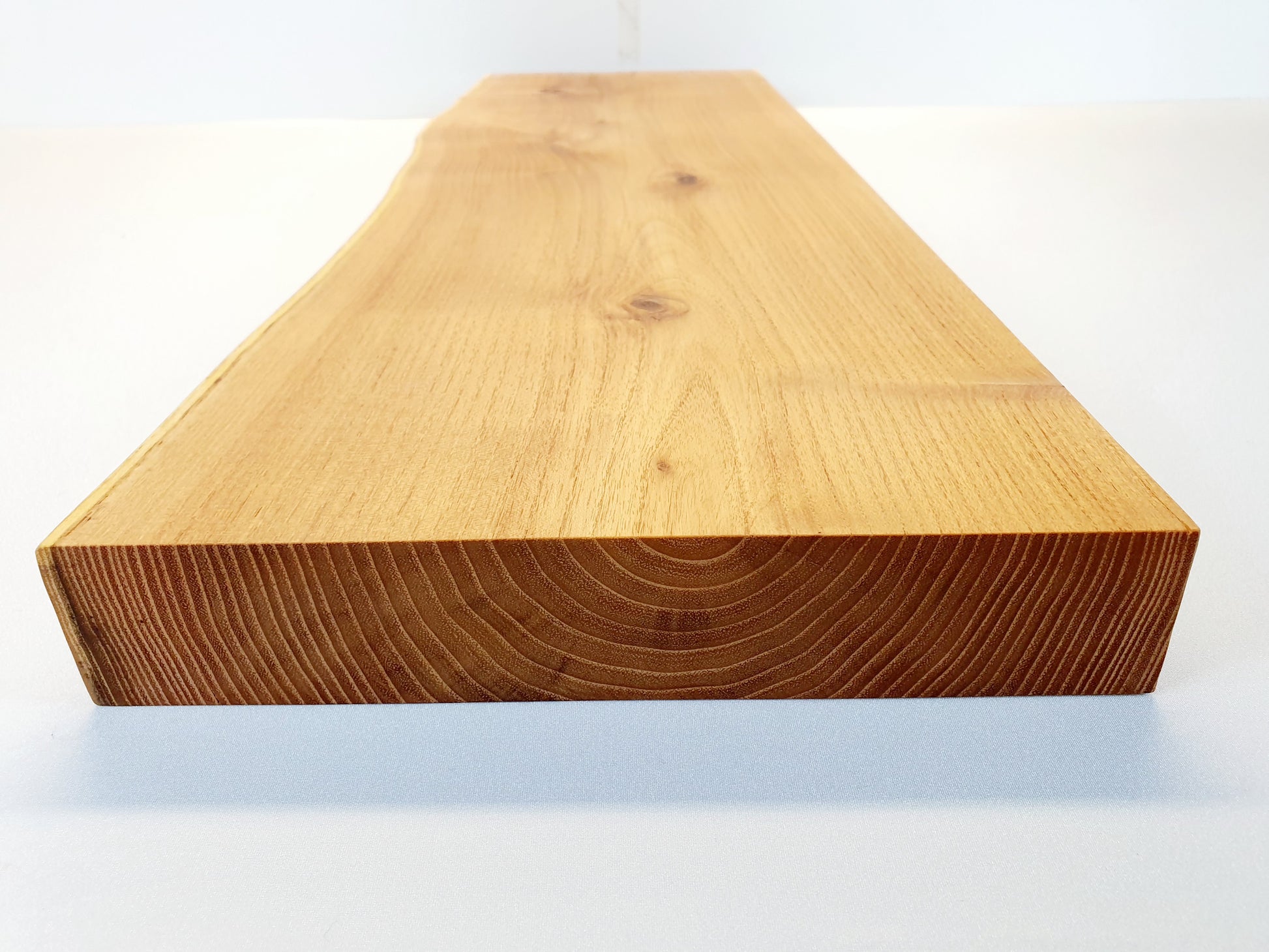 Du bestimmst die Länge (20–290 cm), Tiefe und Stärke. Auf Wunsch mit echter Baumkante für ein besonders naturverbundenes Erscheinungsbild. Durch unsere verdeckte Aufhängung wirkt das Regal schwebend und elegant – ganz ohne sichtbare Winkel. -