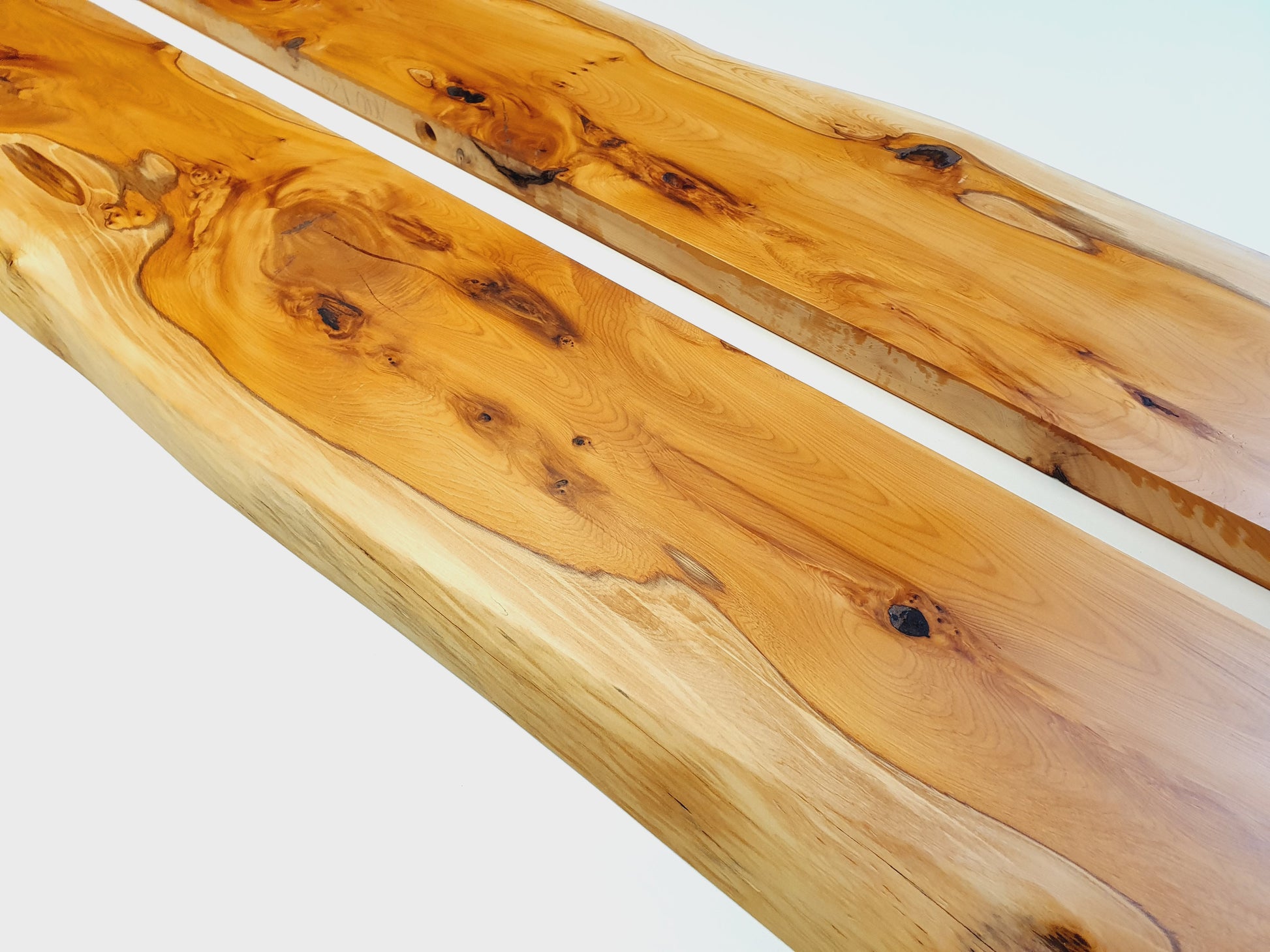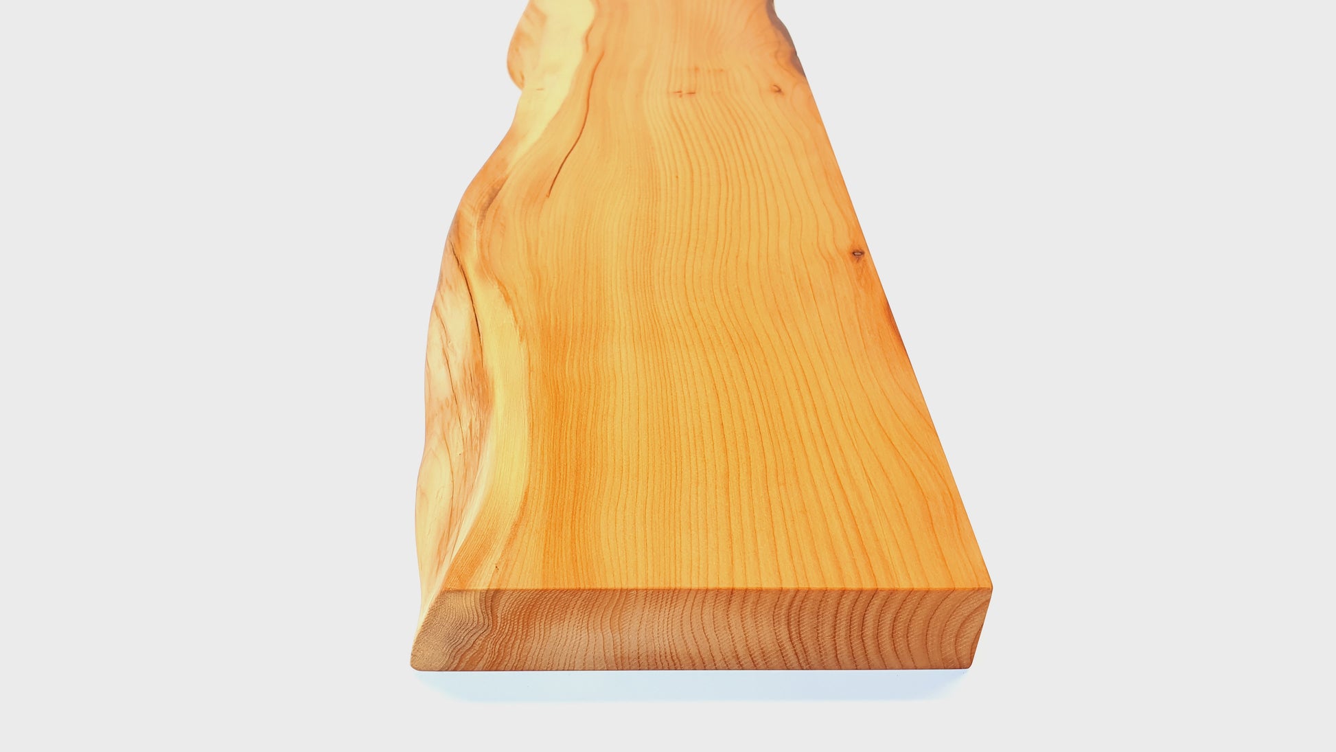 Eibenholz gilt als besonders edel, robust und langlebig. Es vereint Härte mit einer außergewöhnlich dekorativen Optik und ist damit ideal für exklusive Wandboards. Ob als dekoratives Regal im Wohnzimmer, als stilvolle Ablage im Flur oder als einzigartiges Küchenboard – ein Wandboard aus Eibe mit Baumkante bringt natürliche Eleganz in jeden Raum.
