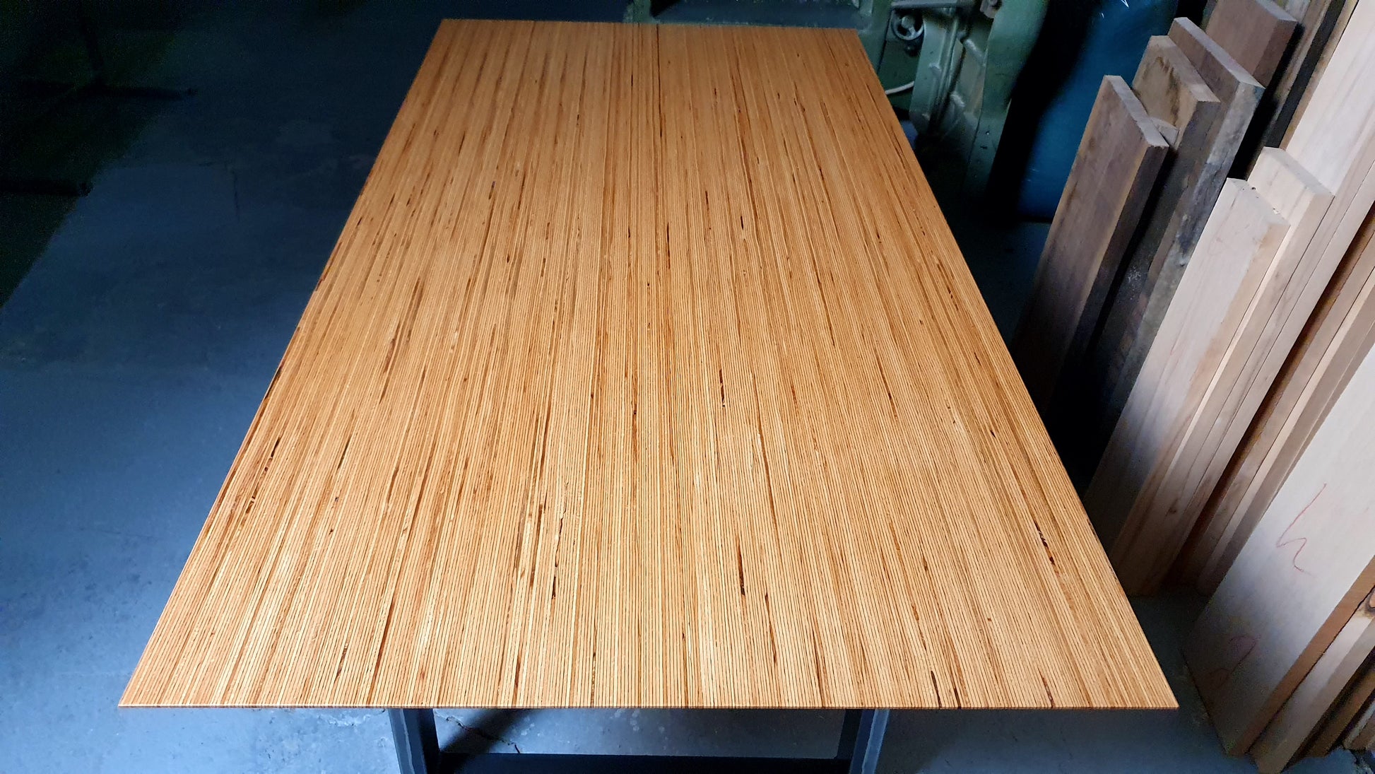 und die Tischplatte erhält seinen warmen, zeitlosen Farbton – für eine
