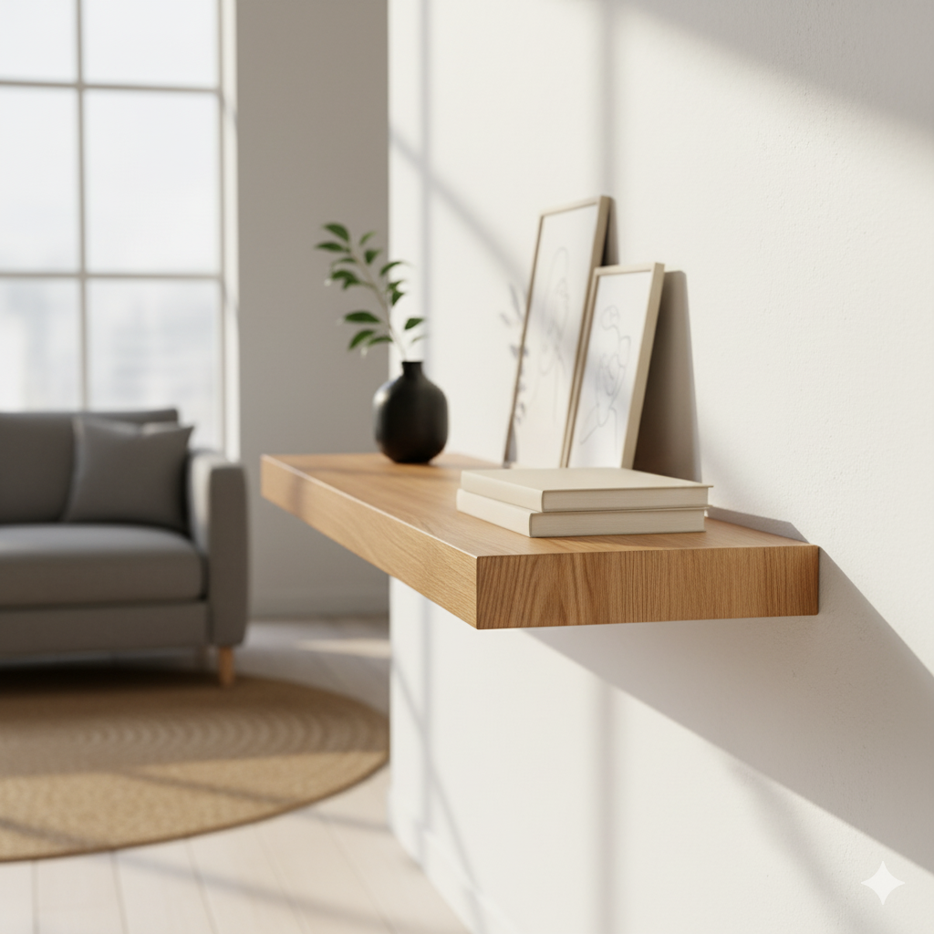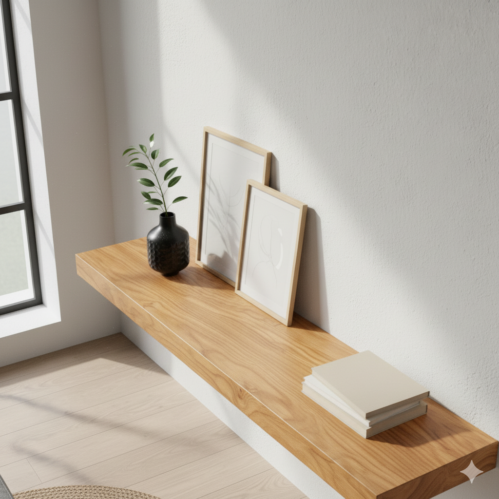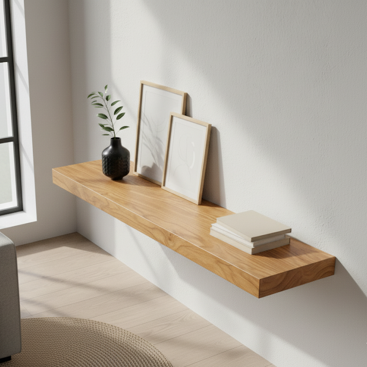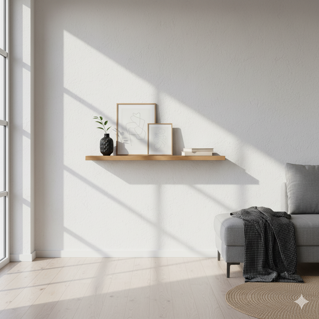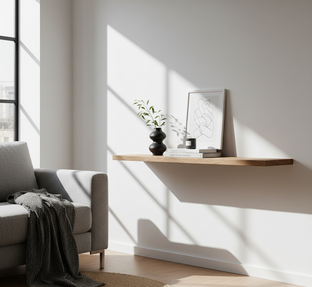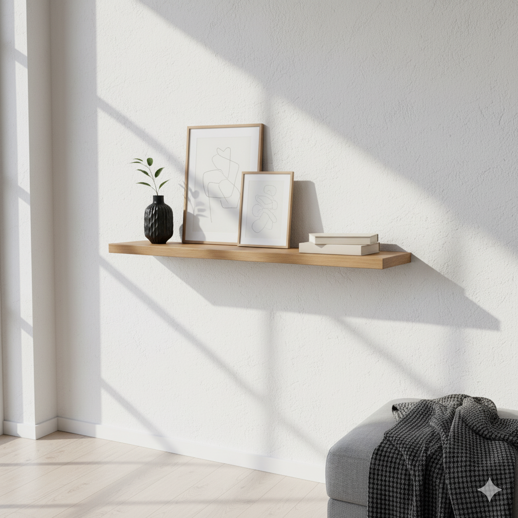 Dank der unsichtbaren, schwebenden Befestigung wirkt das Ulme Wandboard modern und leicht, bleibt dabei aber robust und langlebig. Ob im Wohnzimmer, in der Küche oder im Büro – dieses Regal setzt überall stilvolle Akzente.
